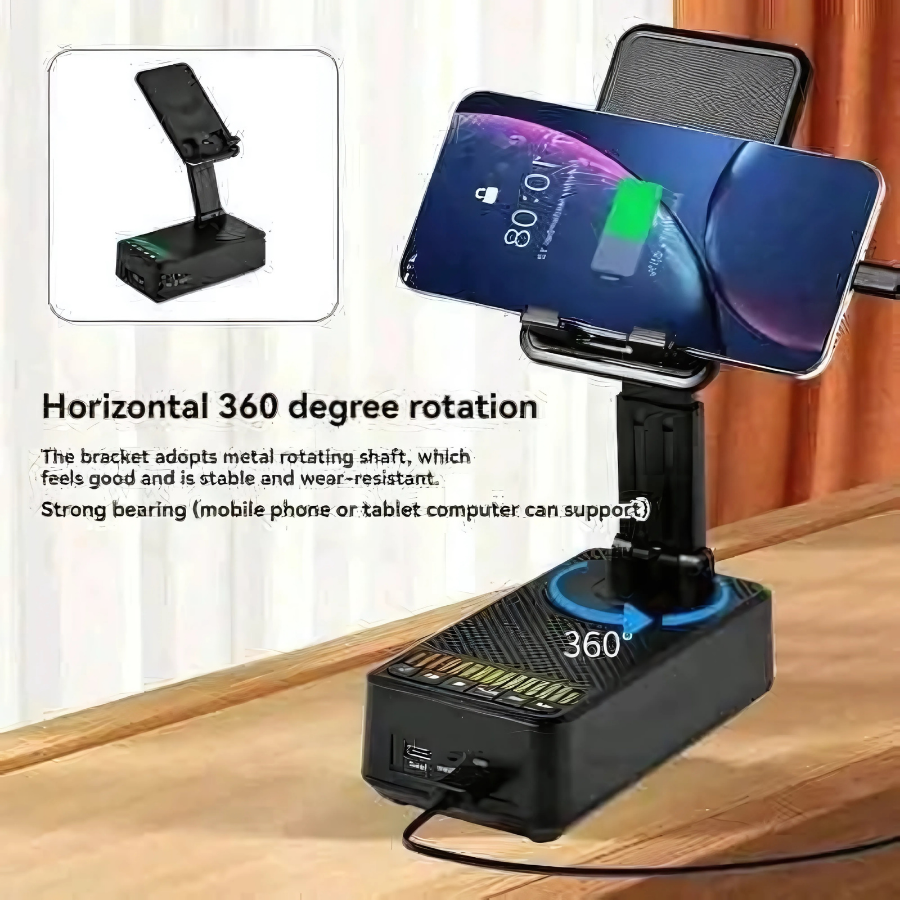 Get the ultimate multifunction gadget – the 3-in-1 Phone Holder with Bluetooth Speaker & Power Bank. Perfect for music, movies, and emergency charging.
