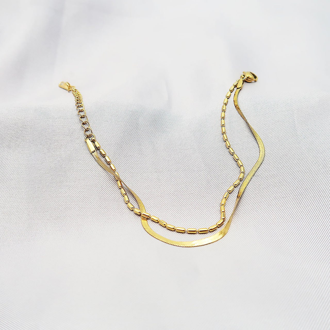 Step into elegance with this AlifWorld™ Dual Layer Gold-Tone Adjustable Bracelet, a perfect blend of minimalism and sophistication. Featuring a sleek snake chain paired with a stylish oval-link chain, this bracelet brings a touch of luxury to your everyday look. Designed for comfort and adjustability, it comes with a sturdy lobster clasp and extension chain to fit any wrist size.