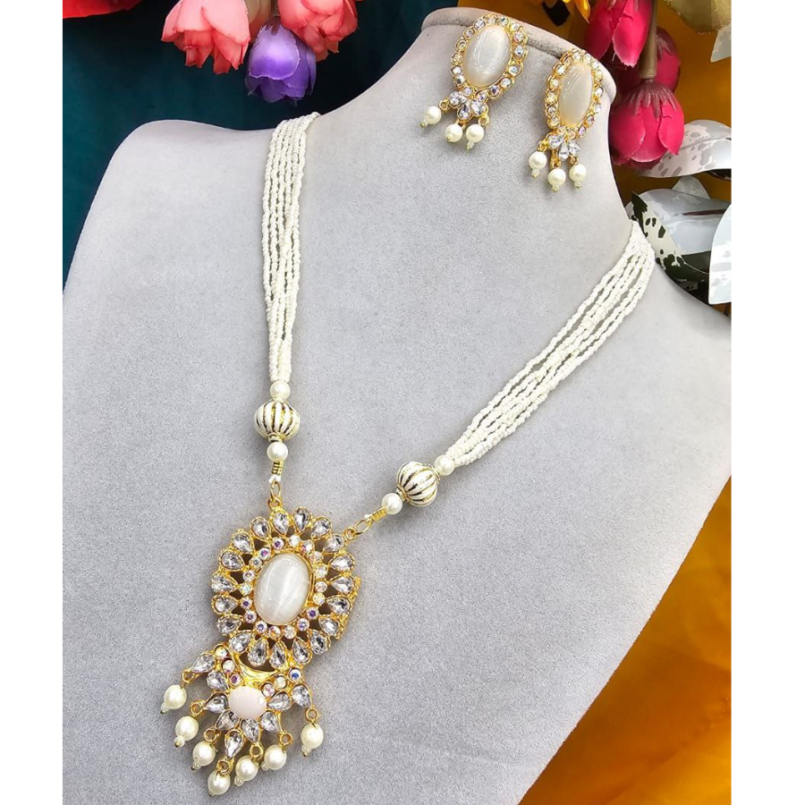 Add a touch of timeless elegance to your jewelry collection with our Multi-Strand Pearl Necklace & Earring Set. Beautifully crafted, this set combines classic pearls with ornate gemstone accents to deliver a stunning look for weddings, parties, or festive occasions.