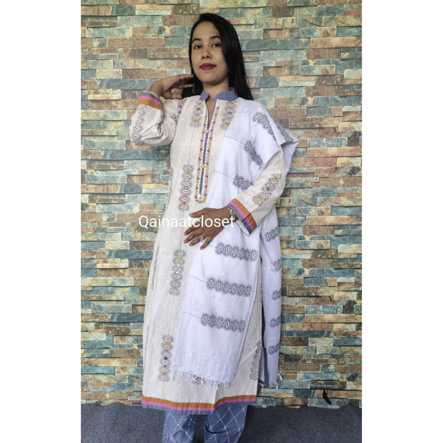 Upgrade your wardrobe with this premium cotton embroidered set and experience the perfect blend of style, comfort, and sophistication.