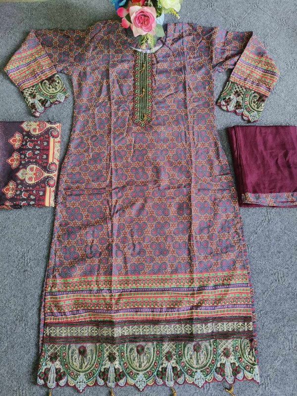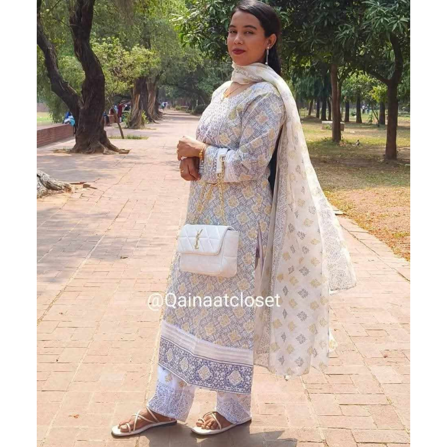 Experience comfort and style with this Ladies Casual Cotton Dress. Made from lightweight cotton, it’s perfect for daily wear, casual outings, and summer days. Comes as a 3-piece set including Kameez, Salwar, and Dupatta. Hand & machine washable for easy care.