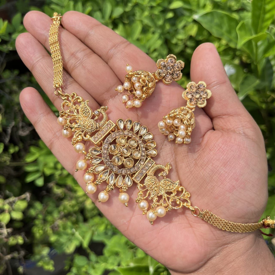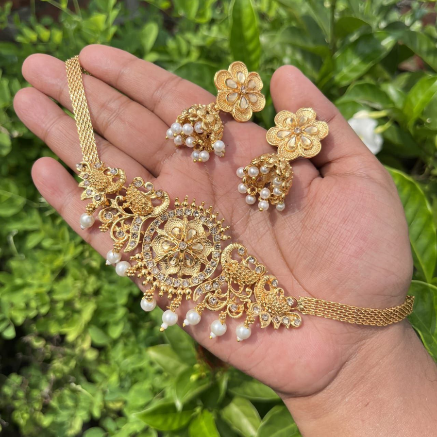 This premium gold plated pearl necklace set is designed for women who prefer an elegant and traditional look for special occasions. The detailed craftsmanship with pearl hanging accents gives a rich and graceful appearance, making it suitable for weddings, parties, and festive wear. The set pairs beautifully with saree, lehenga, or salwar kameez and adds a classic charm to any outfit.