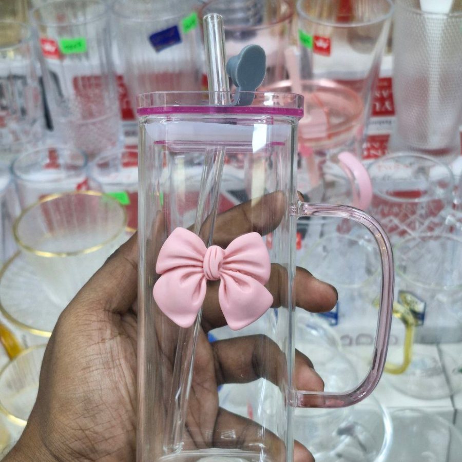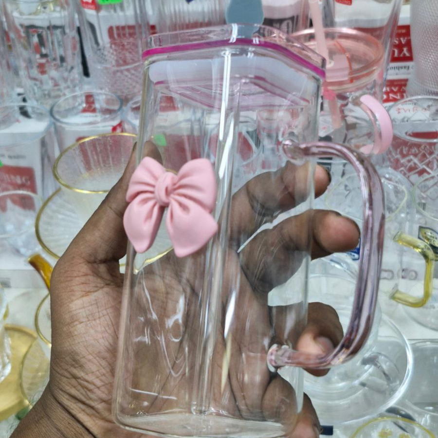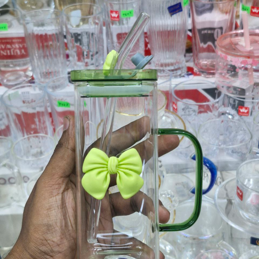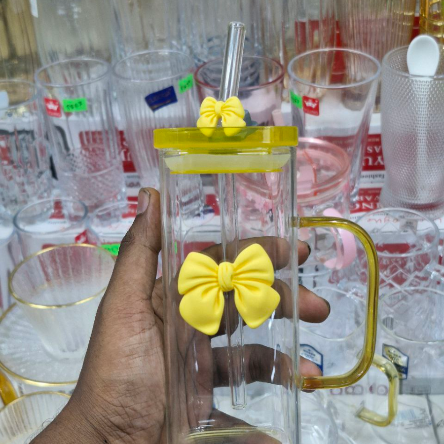 This stylish glass drinking jar with straw and handle is designed for keeping your favorite cold drinks fresh and enjoyable during hot days in Bangladesh. Made with clear durable glass and a secure lid, it offers a comfortable grip and a reusable straw for daily juice water or cold beverage use. The cute decorative design adds an aesthetic touch, making it suitable for home kitchen use cafés or as a gift item at a budget friendly bd price.