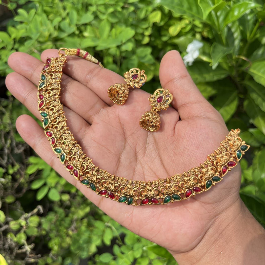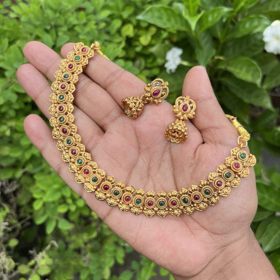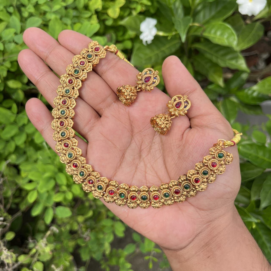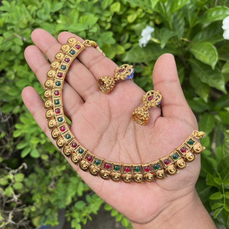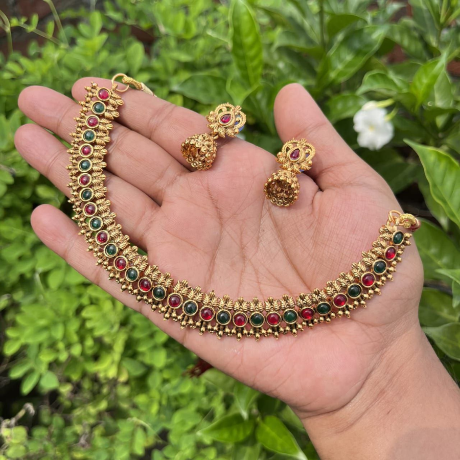 Elevate your ethnic style with this Traditional Kundan-Style Necklace Set featuring vibrant red and green stones. Perfect for weddings, parties, or festive occasions, this multi-stone fashion jewelry set delivers a rich, classic look inspired by Kolkata and Indian heritage designs. Made from durable alloy with a polished finish, it offers the elegance of traditional Kundan and Polki necklaces without the gold price, making it ideal for daily use or special events in Bangladesh.