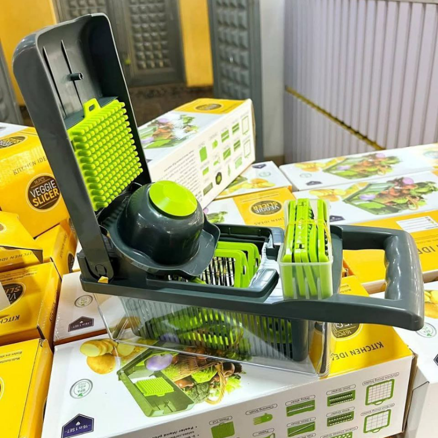 The Platinum 16-in-1 Vegetable Chopper offers quick slicing, cutting, grating, cubing and peeling in a single compact tool, making daily cooking faster and cleaner. The 1L container and multiple blade options help prepare any vegetable with ease.