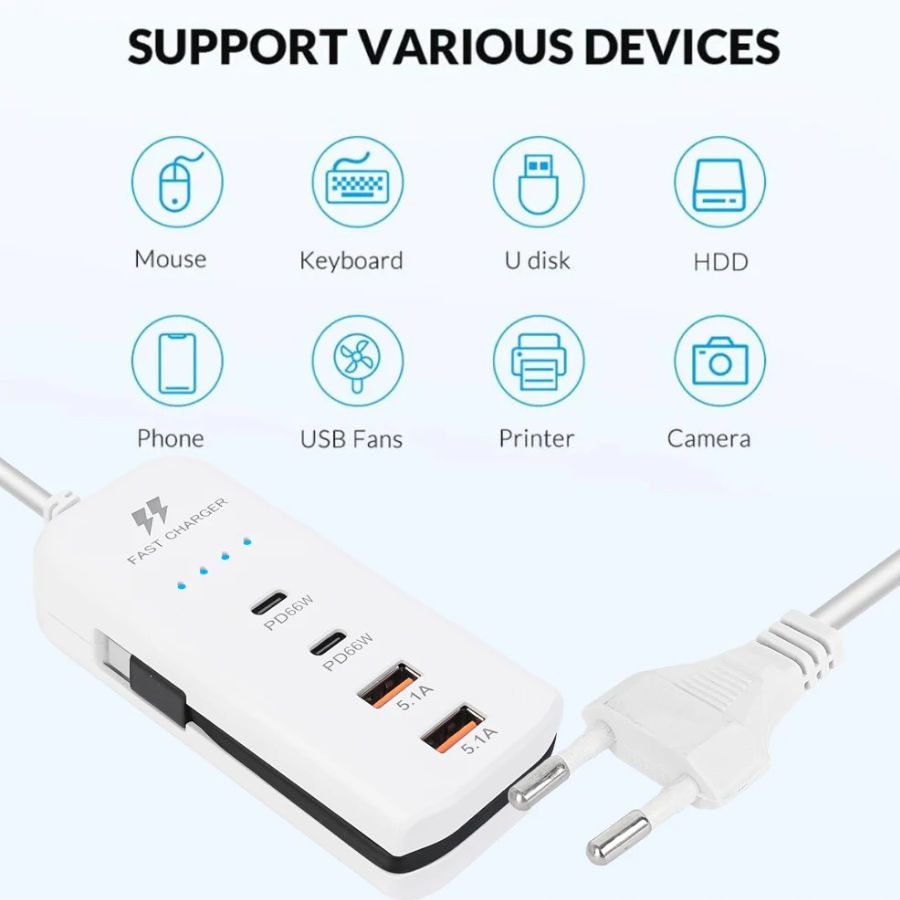 Stay powered up with the RACK 66W Fast Charger, designed for safe, fast, and efficient charging. Featuring multiple ports, it’s ideal for charging smartphones, tablets, laptops, and other gadgets at the same time.