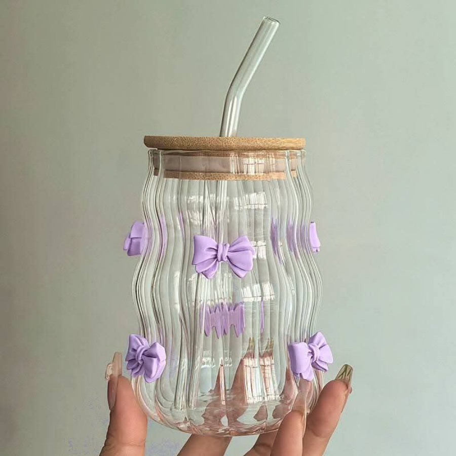 • Material: Glass body with plastic lid and straw
